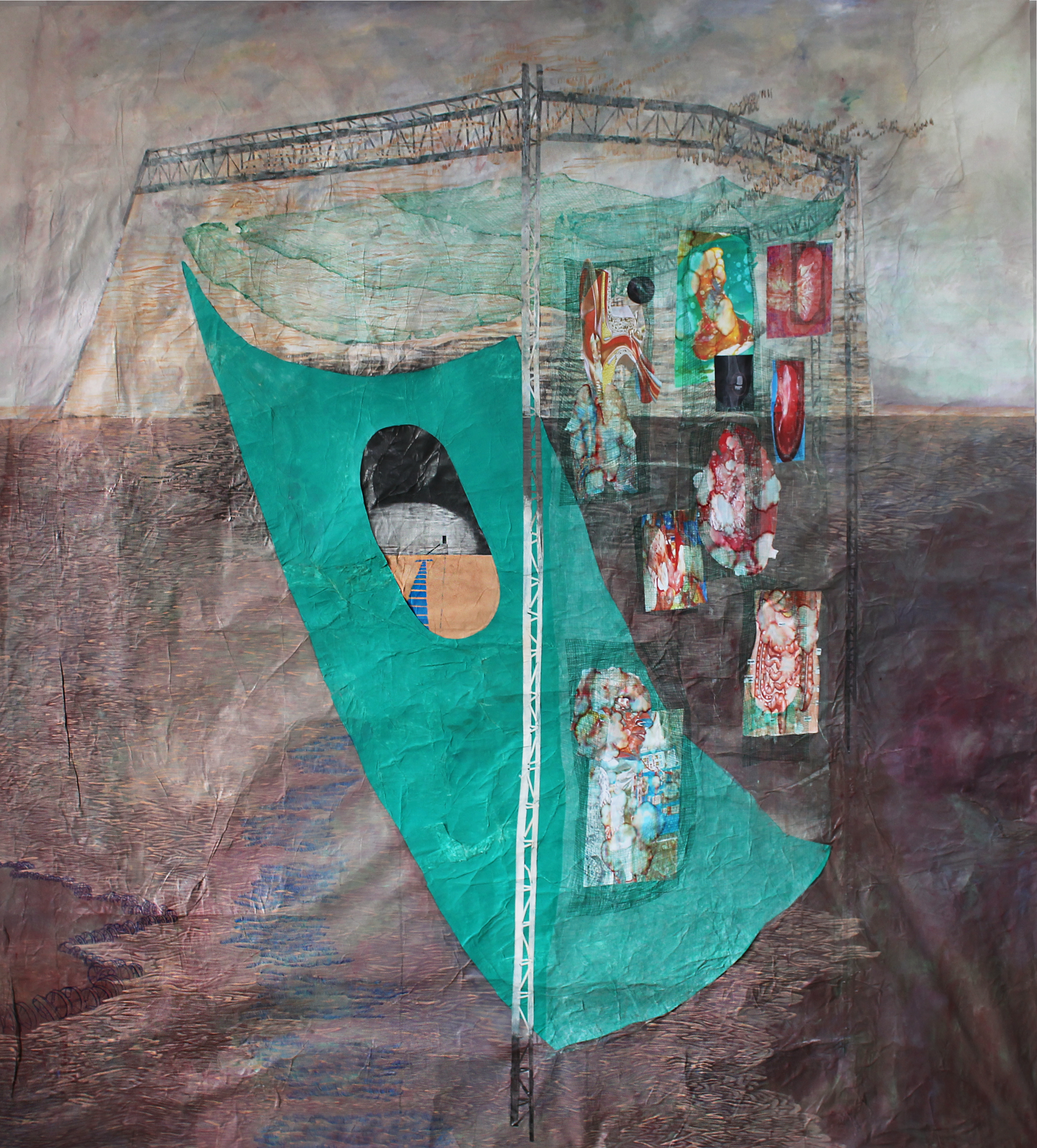 watercolor, graphite,ball pen, dye ink print, bandage on Korean paper